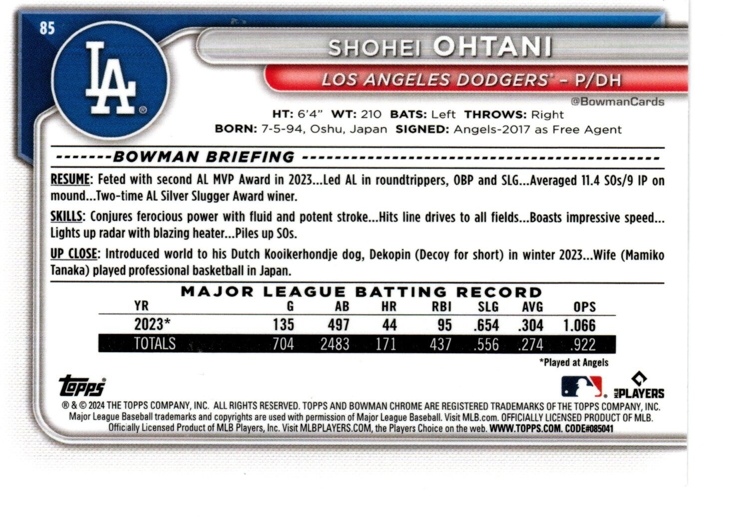 Bowman Chrome 2024 Mega Box Mojo #85 Shohei Ohtani, Los Angeles Dodgers