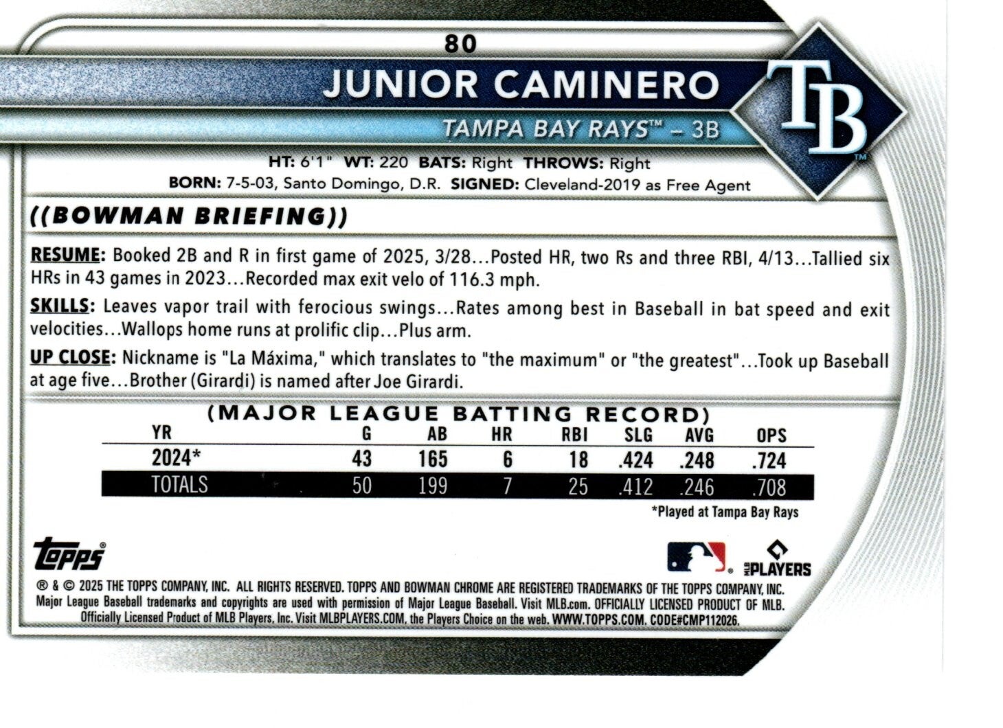 80 Junior Caminero, Tampa Bay Rays