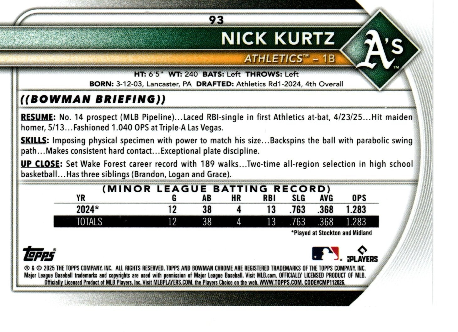 93 Nick Kurtz, Athletics RC