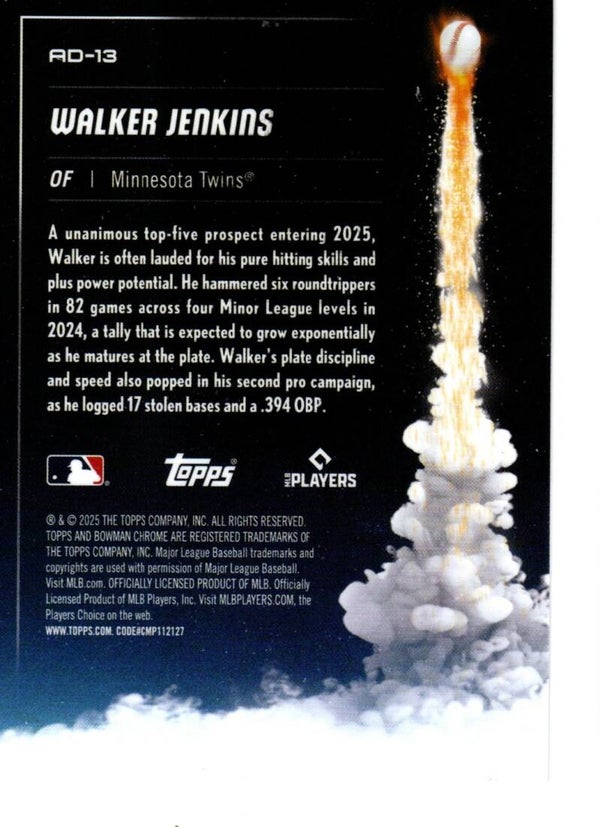 Bowman Chrome 2025 Adios #AD-13 Walker Jenkins, Minnesota Twins