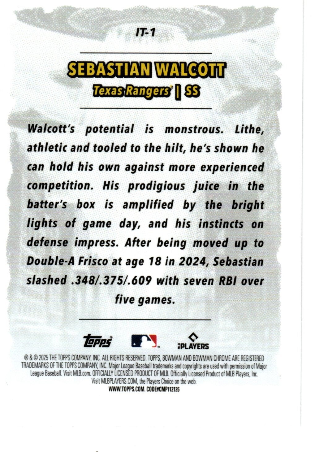 Bowman Chrome 2025 It Came To The League #IT-1 Sebastian Walcott, Texas Rangers