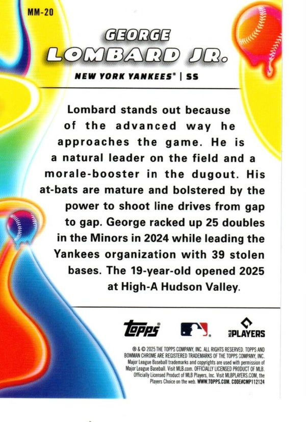 Bowman Chrome 2025 Melt Mashers #MM-20 George Lombard Jr., New York Yankees