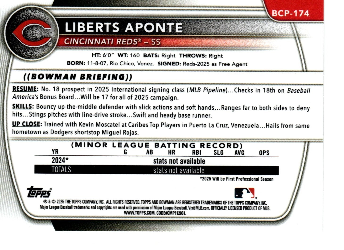 BCP-174 Liberts Aponte, Cincinnati Reds