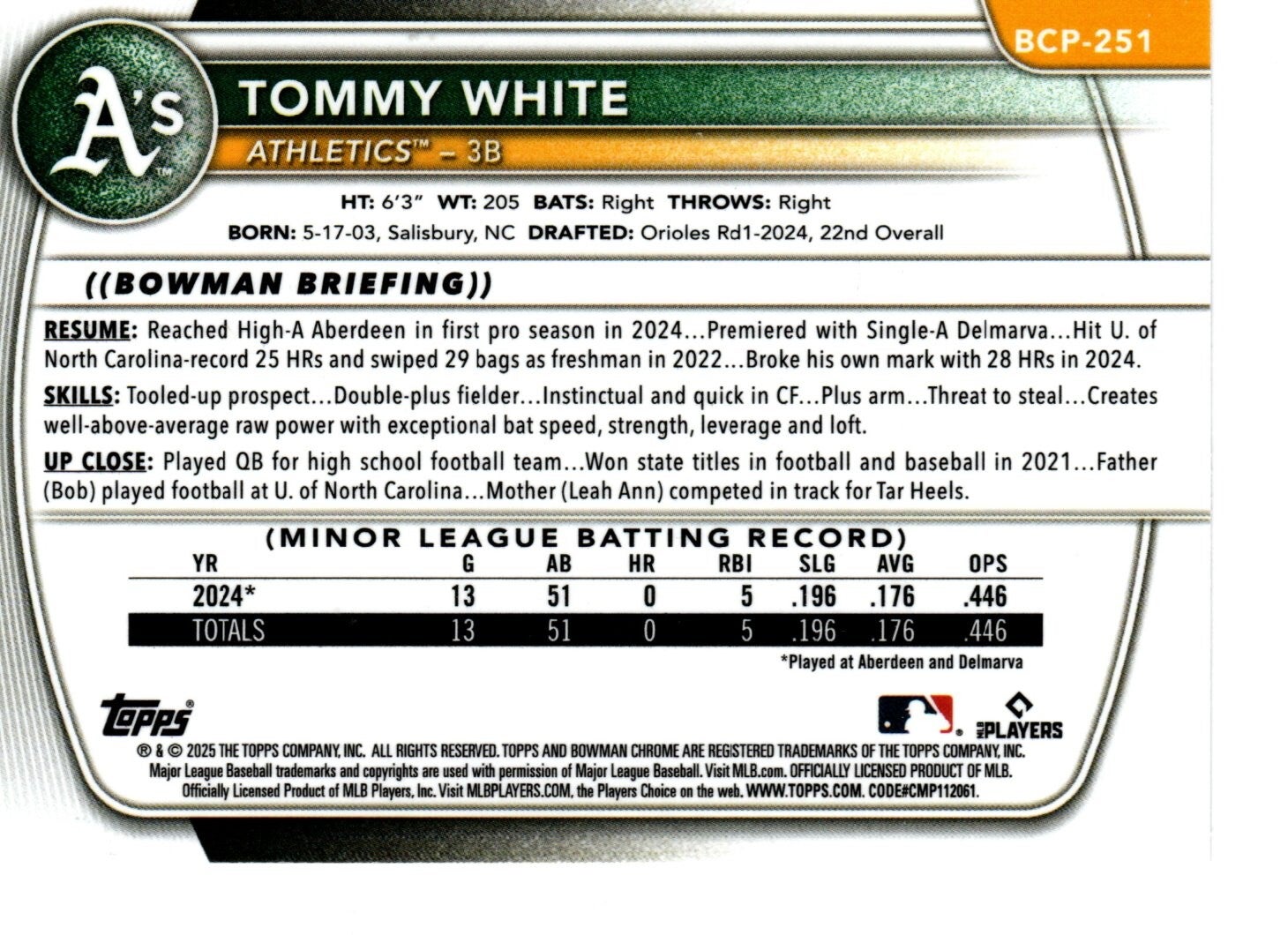 Bowman Chrome 2025 Prospects #BCP-251 Tommy White, Athletics