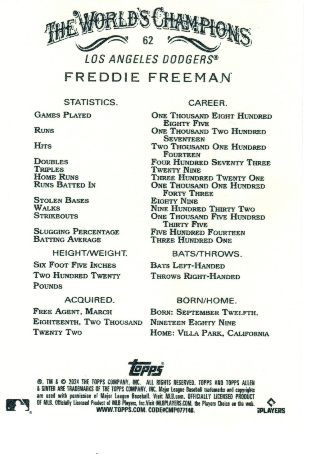 62 Freddie Freeman, Los Angeles Dodgers
