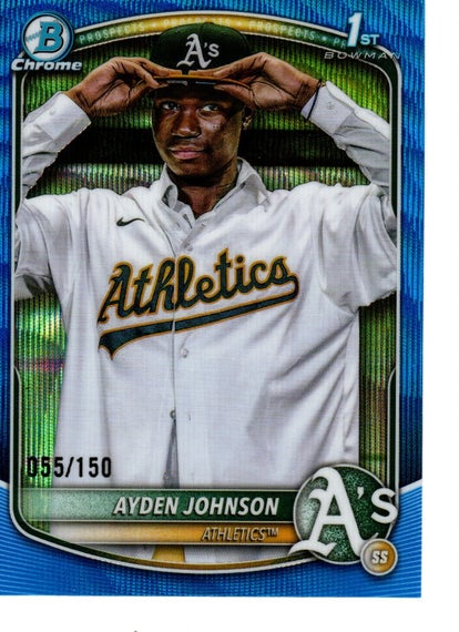 Bowman Chrome 2025 Prospects Blue Wave 55/150 #BCP-197 Ayden Johnson, Athletics